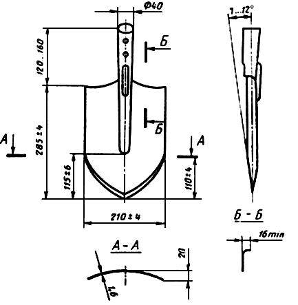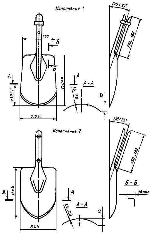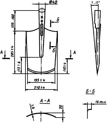 1.4. Основные размеры лопат (без черенков) и их предельные отклонения должны соответствовать указанным на черт.2-16.