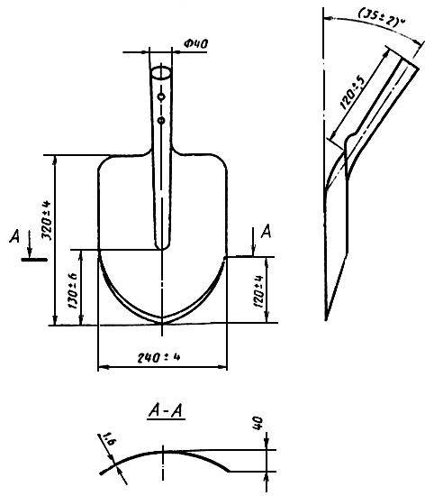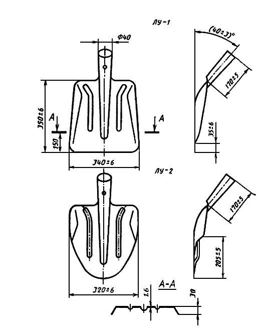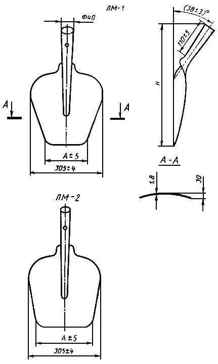2.6. Полотна лопат типов ЛКО, ЛГР, ЛПГ, ЛП, ЛКП, ЛОВ, ЛОП и ЛОУ должны быть с режущей кромкой. Угол заострения режущей кромки должен быть не более 20°, толщина режущей кромки — не более 0,5 мм.