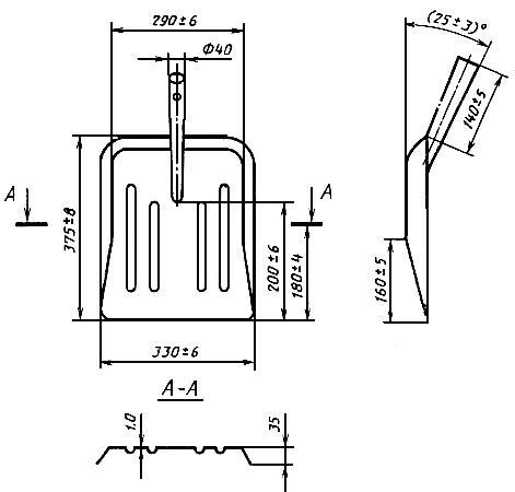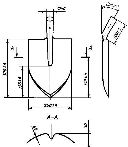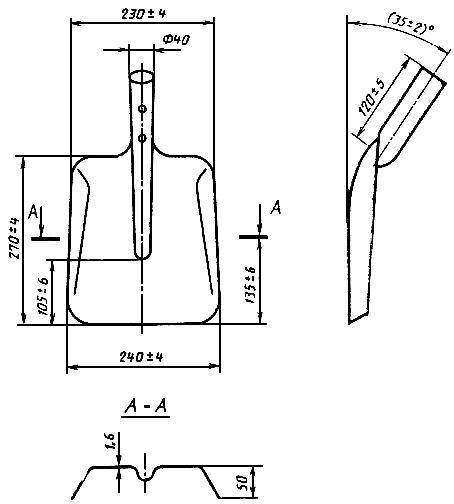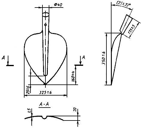 2.5. Отклонения поверхности полотен от номинальной ±6 мм, садово-огородных лопат ±3 мм, для полотен лопат, изготовленных без термической обработки ±4 мм.