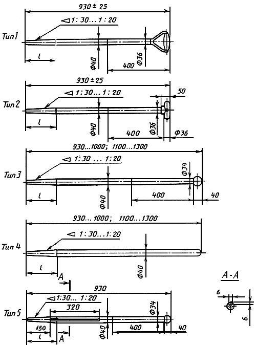 1.6. Основные размеры черенков и их применение по типам лопат должны соответствовать указанным на черт.17.