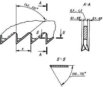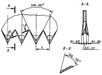Зубья ножовок с шагом до 3 мм включительно должны иметь прямую заточку передней и задней грани зуба.