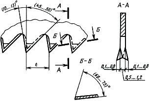 Допускается неполный профиль крайних зубьев (по одному с каждой стороны) и по пять зубьев с передней и задней сторон не затачивать и не разводить.