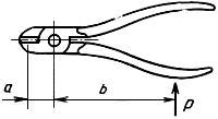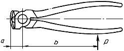 Черт.3. Диаметр проволоки, нагрузка на рукоятки и место ее приложения для кусачек типа 1