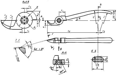 1.3. Основные размеры деталей кусачек типов 1 и 2 указаны в приложении.