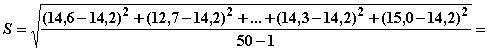 (14,6+12,7+15,0+…+14,3+15,0):50=14,2 МПа.