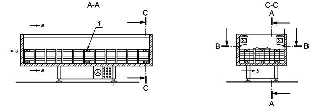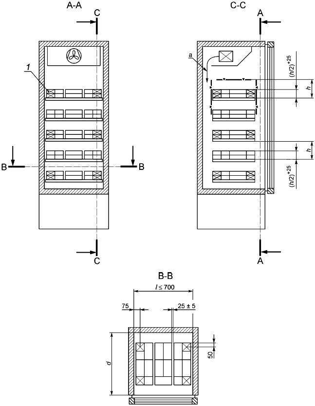 Рисунок A.9 — Вертикальный охлаждаемый многоярусный шкаф на конце образца