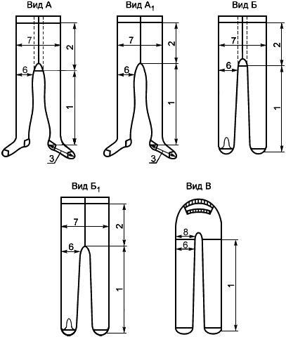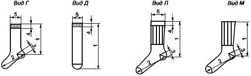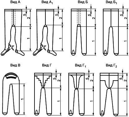 Таблица 1 — Виды чулок, получулок (гольф), носков