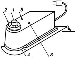 Г.2.1.1 Прибор типа ПТК-1 для контроля толщины шва чулочно-носочных изделий (рисунок Г.1). С помощью микрометрического блока 1 прибор регистрирует превышение выступающей части шва от нормы. Если шов не превышает по толщине допустимого предела, блок электронной обработки инициирует индикатор НОРМА (загорается зеленая лампочка). Если шов превышает установленный предел, блок электронной обработки инициирует сигнал БРАК (загорается красная лампочка).