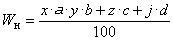 y, z, j — нормированная влажность нитей из соответствующих волокон, %.