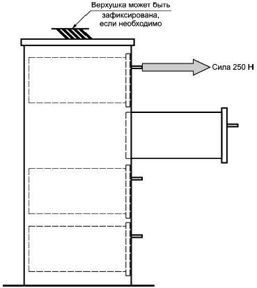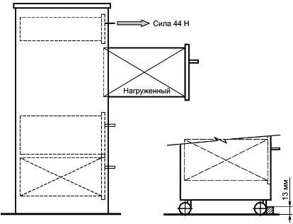 7.8.3 Картотеки при установке друг на друга считаются прошедшими испытания, если не произошло их опрокидывания, и не прошедшими испытания, если открытые ящики не позволяют картотеке упасть из-за контакта с испытательной платформой.