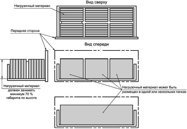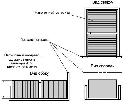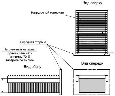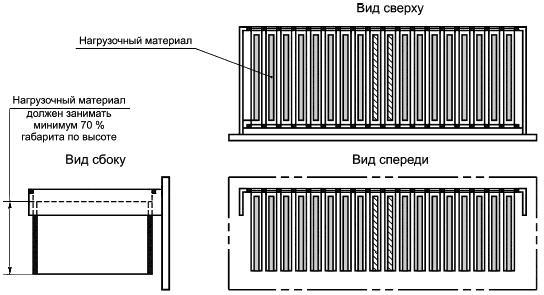 Нагрузочный материал должен быть равномерно распределен от передней стороны к задней, а также от одной стороны к другой на дне ящика. В качестве нагрузочных материалов могут также использоваться жесткие материалы (например, сталь, пенополистирол и т.д.). Для ящиков, у которых глубина больше ширины (см. рисунок 8), для ящиков, у которых ширина больше глубины (см. рисунок 9).