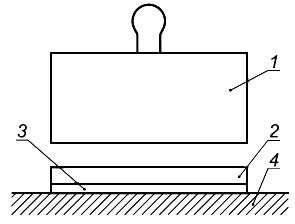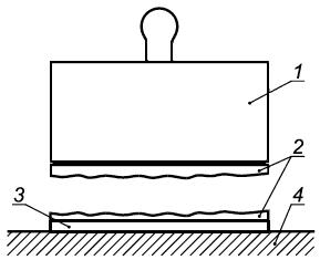 1 — штамп; 2 — керамическая плитка; 3 — клеевой раствор; 4 — основание (бетонная плита)