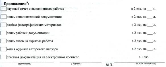 к Порядку приемки работ по сохранению объекта культурного наследия утвержденному приказом Министерства культуры Российской Федерации от 25 июня 2015 г. № 1840