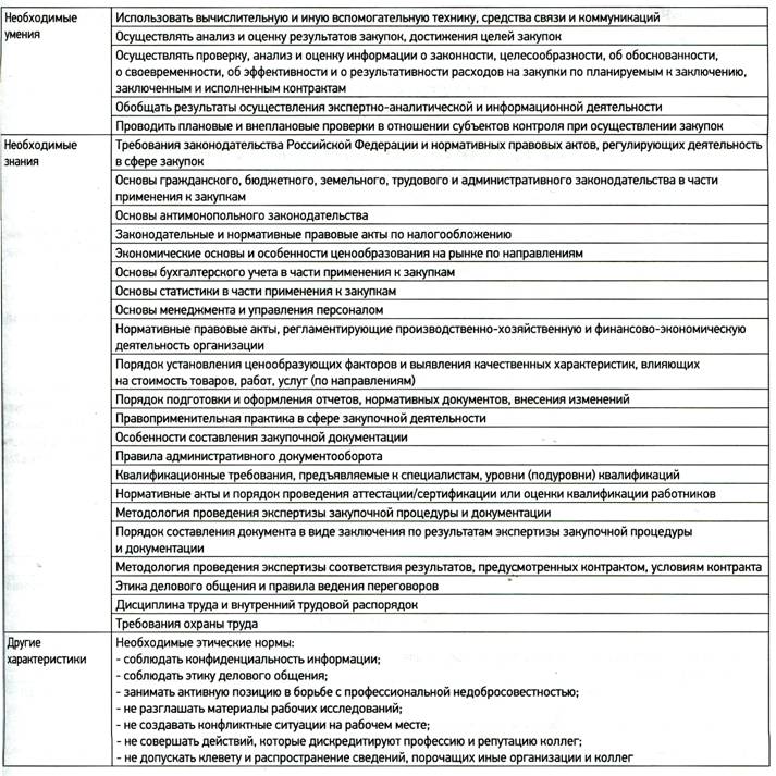 Не менее пяти лет в сфере закупок, в том числе на руководящих должностях не менее двух лет |