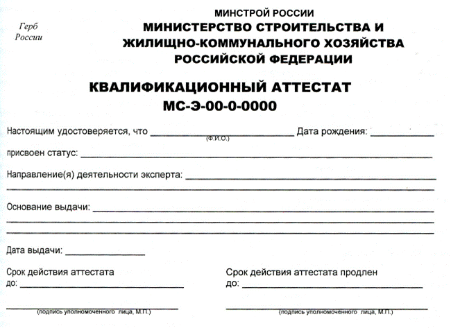 Форма квалификационного аттестата на право подготовки заключений экспертизы проектной документации и (или) результатов инженерных изысканий